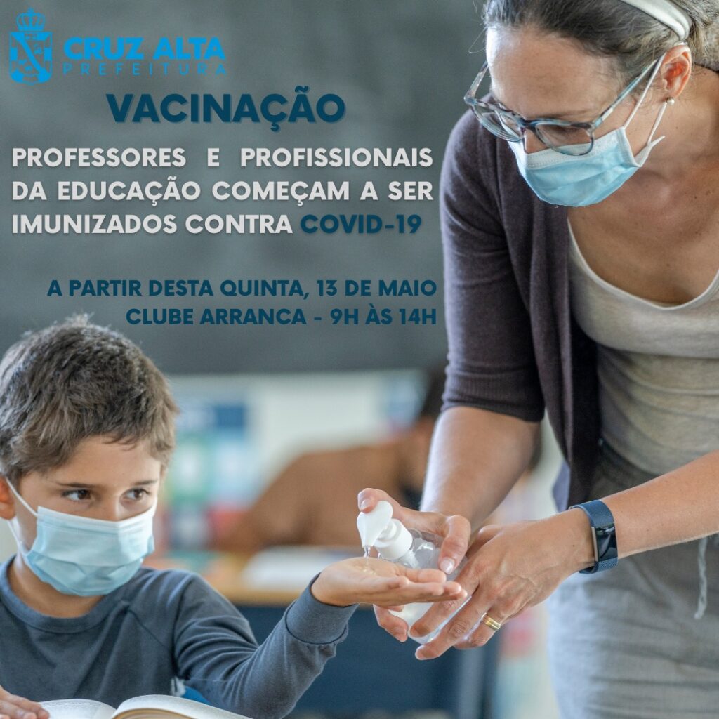 O Cronograma inicia nesta quinta-feira, 13, com a imunização de professores e profissionais da educação, na faixa etária de 40 anos ou mais, de todas as instituições públicas e privadas. A imunização acontece no Clube Arranca, paralelo a vacinação de pessoas com comorbidades. O Horário é das 9h às 14h, sem intervalo ao meio-dia.