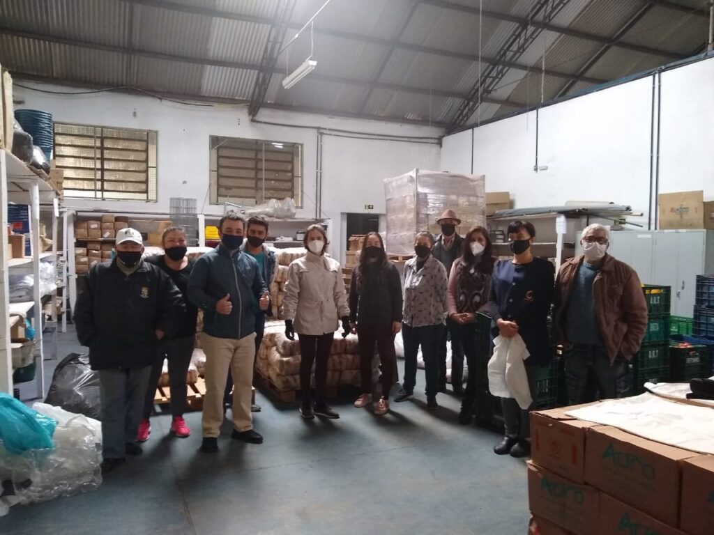 Cada kit contém 17 itens: arroz, leite em pó, banana, frango, pão, tomate, cebola, maçã, moranga, repolho, chuchu, alface, ovos, suco de uva, mandioca, laranja e biscoito caseiro.