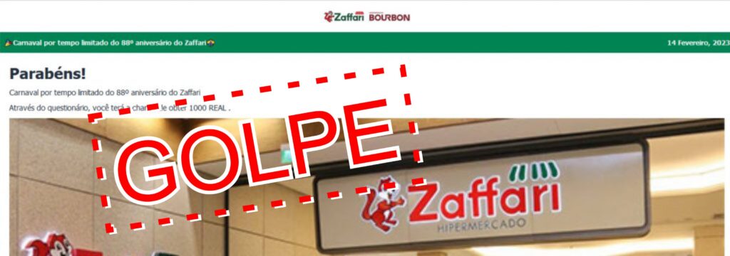Desde a última noite circula nas redes sociais um link, o qual direciona quem nele clica para uma suposta promoção do Zaffari Bourbon, a qual oferece prêmios em dinheiro. O link pede que seja respondido um questionário e cita um prêmio de R$ 1 mil Reais, escrito até mesmo com erro gramatical e outros brindes. O link cita também que a promoção é por tempo limitado, alusiva ao Carnaval e aniversário de 88 anos do Zaffari Bourbon.