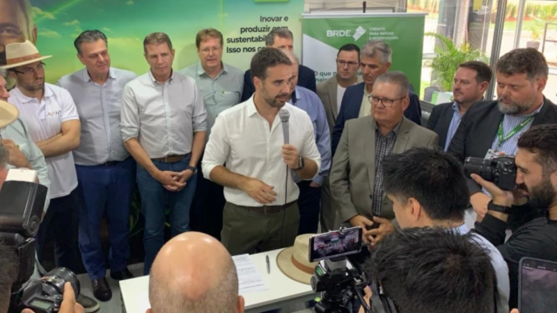 O governador Eduardo Leite, presente no estande do BRDE durante o anúncio, destacou a importância do papel dos bancos no desenvolvimento, afirmando: “Estamos aqui fazendo dos nossos bancos instrumento de desenvolvimento, com apoio ao setor produtivo, para que possam produzir mais, com investimentos em energia limpa, associando cada vez mais o Estado a valores de sustentabilidade, e também na qualificação das cidades.”