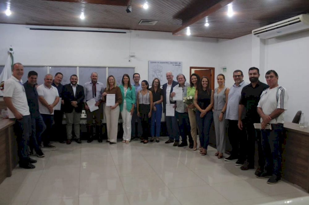 A solenidade de posse contou com a presença do Deputado Federal Pedro Westphalen, Deputado Estadual Rafael Braga, do Presidente do Legislativo, Zeca Amaral e demais autoridades e familiares dos novos secretários.