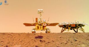 Sonda chinesa Tianwen-1 chegou ao planeta vermelho em 15 de maio A Administração Espacial da China divulgou hoje (11) uma imagem panorâmica de 360 graus e duas fotografias em cores da superfície de Marte e dos dispositivos da sonda Tianwen-1, que chegou ao planeta vermelho em 15 de maio. A imagem mostra os arredores da zona de pouso, um terreno plano e …